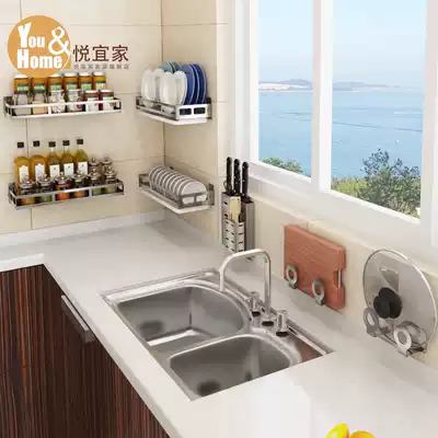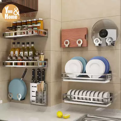 304 stainless steel kitchen rack no hole Wall Wall artifact dishes kitchen knife cutting board pot cover seasoning storage layer rack
