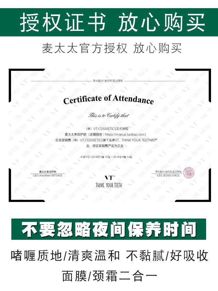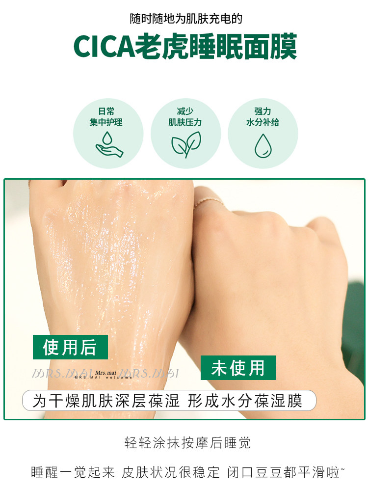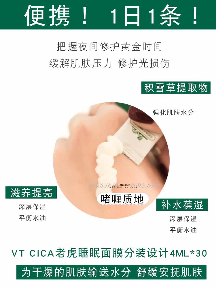 South Korea's vt fante tiger green water ghost centella asiatica sleeping mask strips women's wash-free moisturizing moisturizing calming at night
