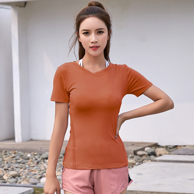 2021 spring and summer new elastic body-fit sports blouses fashion round-collar gym for running and sweating and breathable short sleeves women