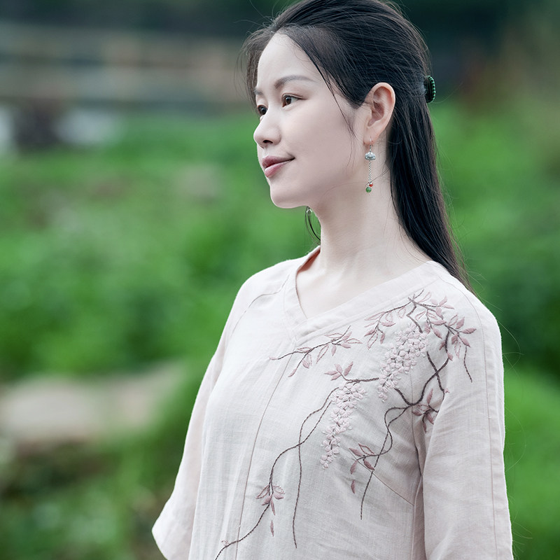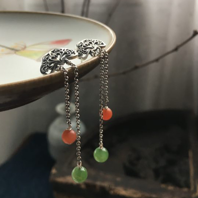 Strangling Poetry (Langi) Pure Silver Flowers with Jade South Red Earrings Customized