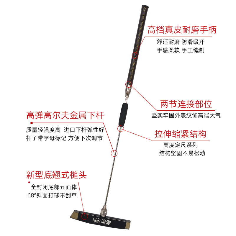 Minghu gateball cue MH-808 type stretch lock detachable portable croquet PU handle Leather handle