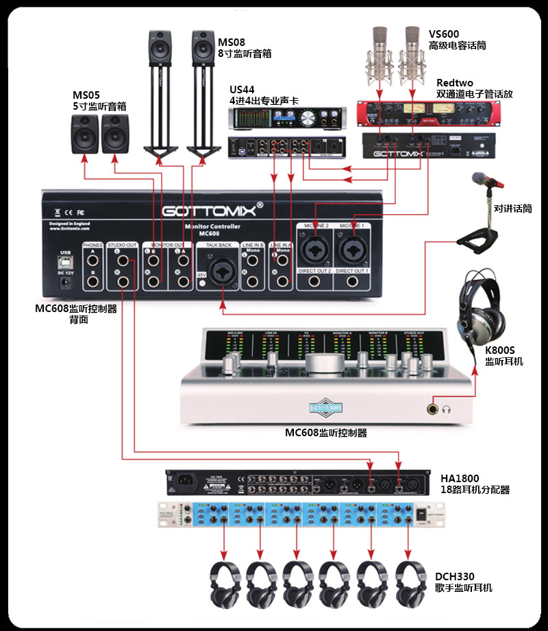Gottomix Redtwo MKII speak dual channel vacuum tube professional microphone multiplex amplifier