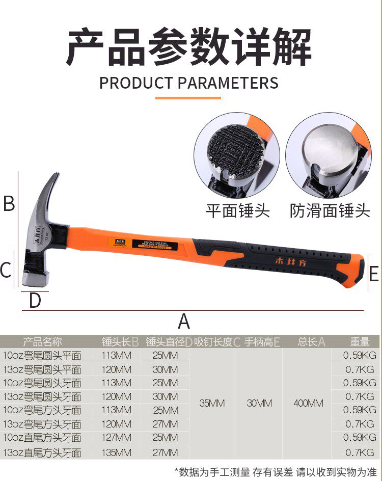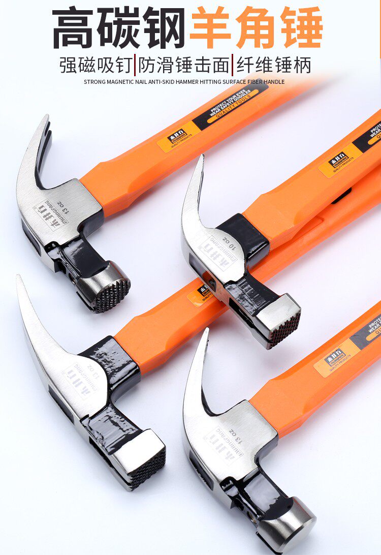 Wooden well square claw hammer special steel hammer round head square head strong with magnetic suction nail insulation handle fiber nail hammer hammer