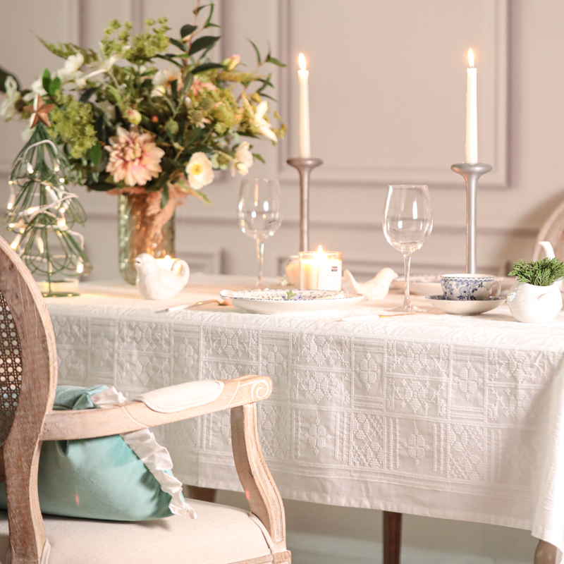 Simple side Margaret pure cotton embroidered table burqa with skirt Margaret pure cotton embroidered table cloth