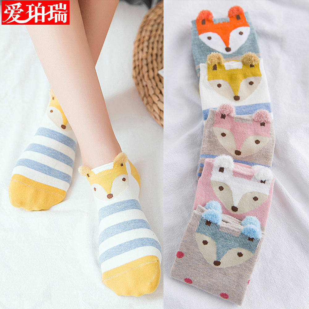 Japanese female Korean version of invisible socks cute little ears summer women's socks shallow invisible socks Japanese cotton socks girls short socks