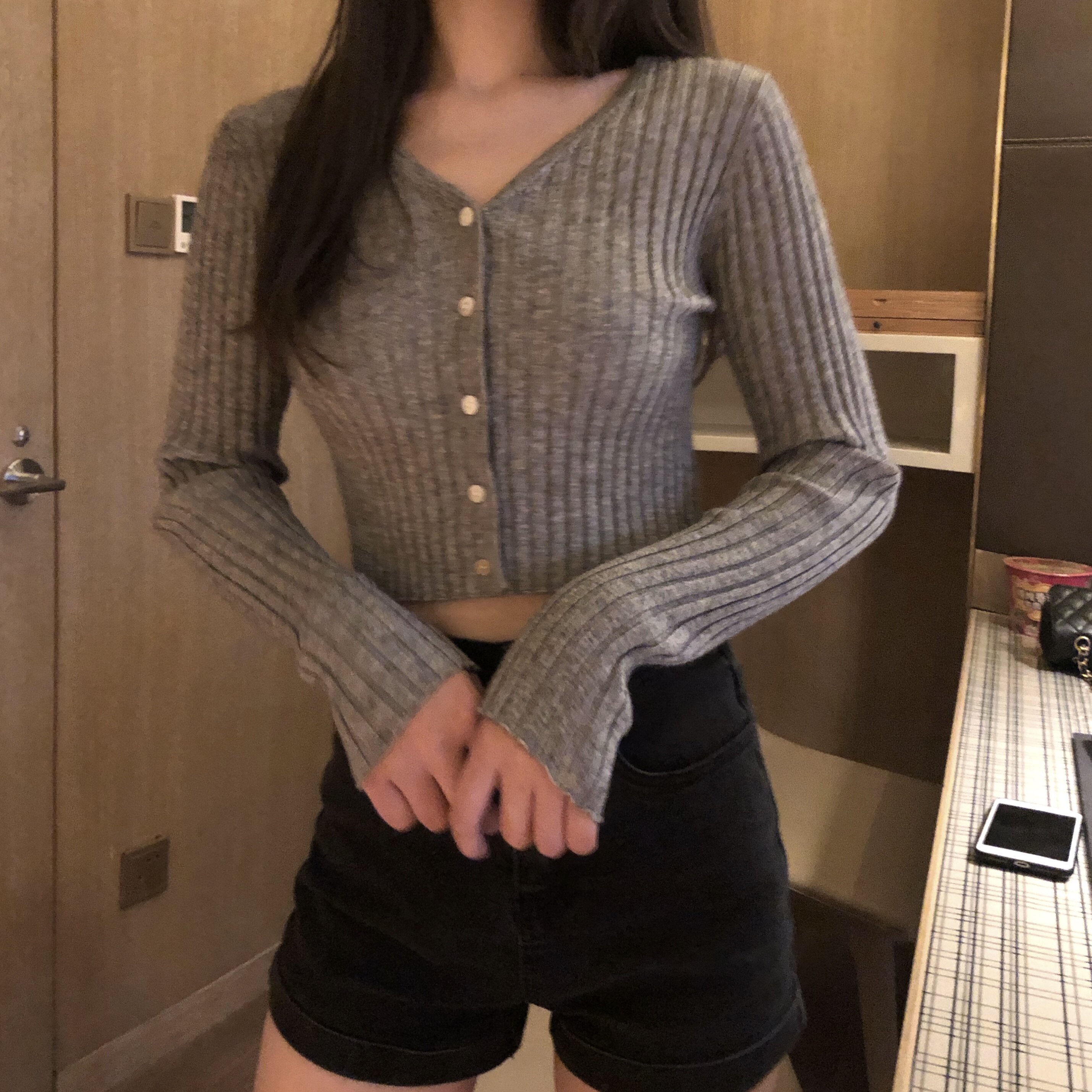 POET WONG version JU good high waist black denim shorts oversize leggings