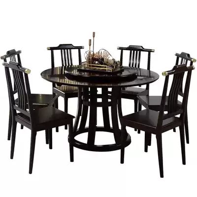 New Chinese solid wood dining table and chair combination dining round table dining table hotel dining room round table black Zen table