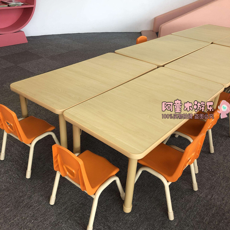 Kindergarten children's fireproof board can be adjusted up and down six-person rectangular table painting table early education training center learning table