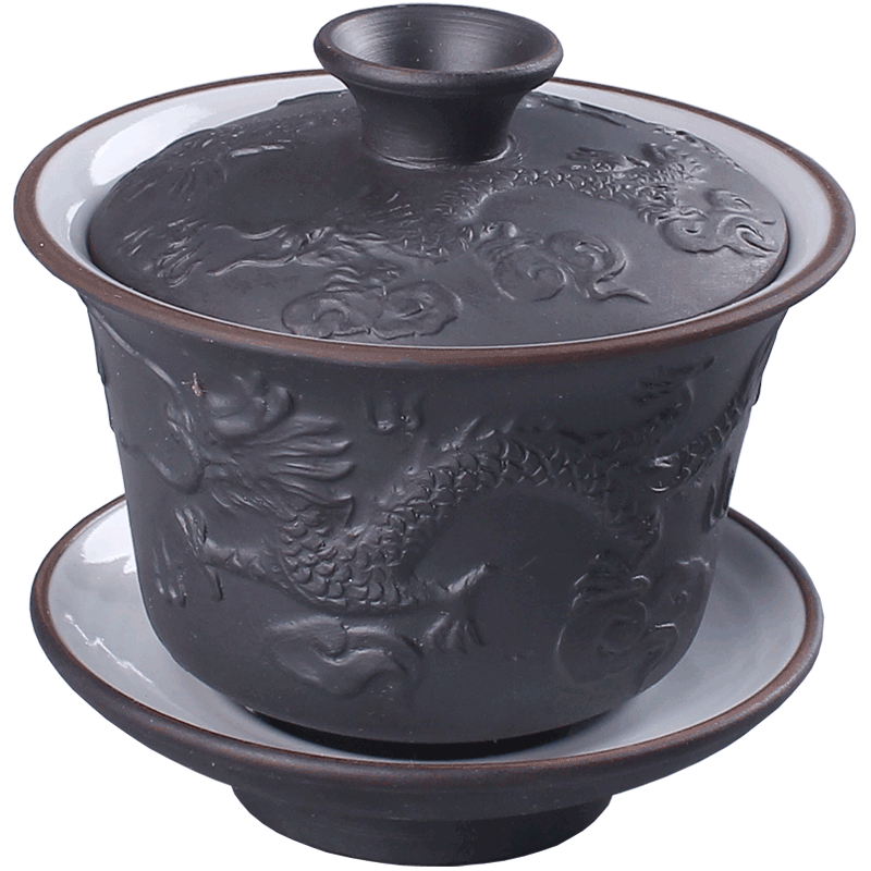 White Black Embossed Dragon Tea Cup Relief Dragon Lid Cover Bowl Base Please