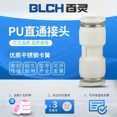 BLCH Bailing pneumatic straight-through white connector PU4 6 10 tracheal quick connector quick plug quick plug quick connection change 8 Change 6