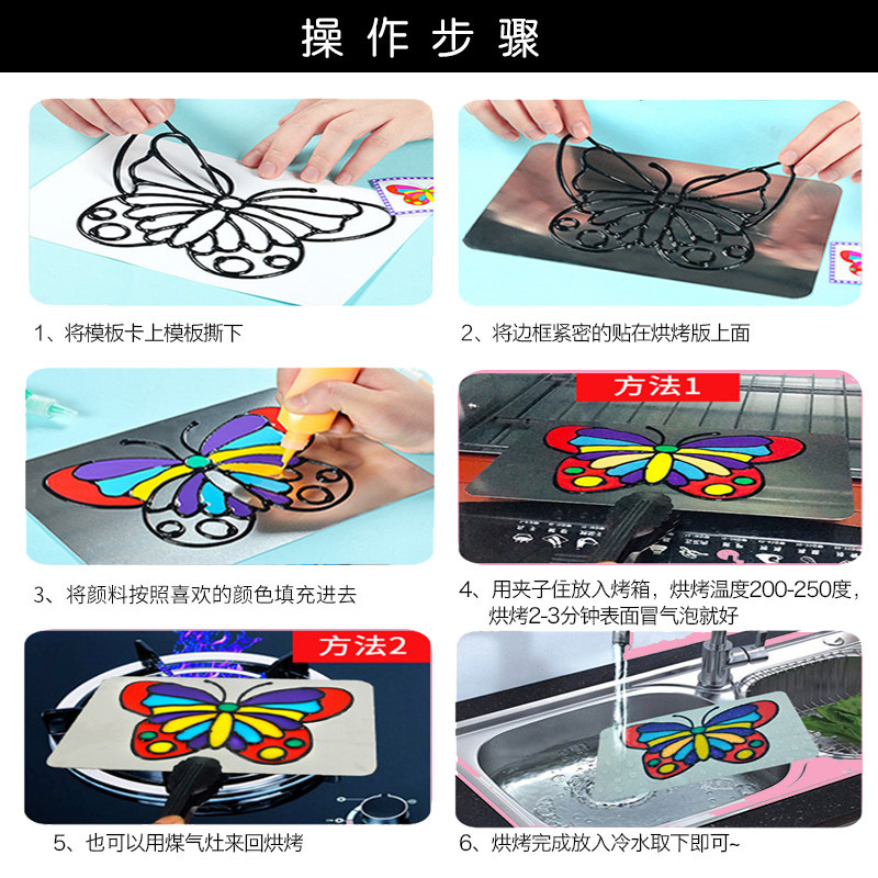 Glue painting baking painting girl children's free baking coloring glue paint glass glue sticker color painting male DIY handmade