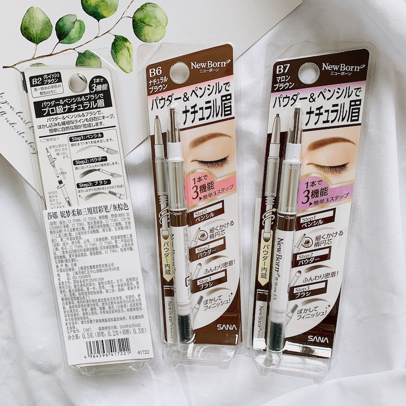 Japan SANA Three-in-one eyebrow eyebrow brush with double head foggy eyebrow brush lasting waterproof sweaty not falling