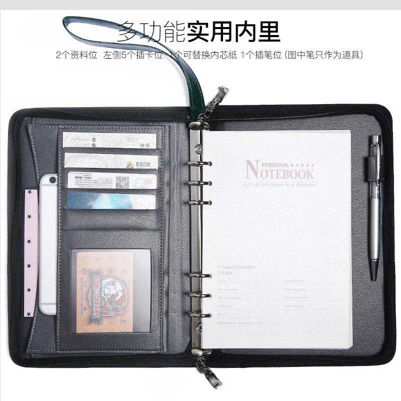 Canoca high-end diary business a5 loose-leaf password notebook art exquisite multi-function fingerprint zipper with lock work notepad detachable thick hand book students can be customized