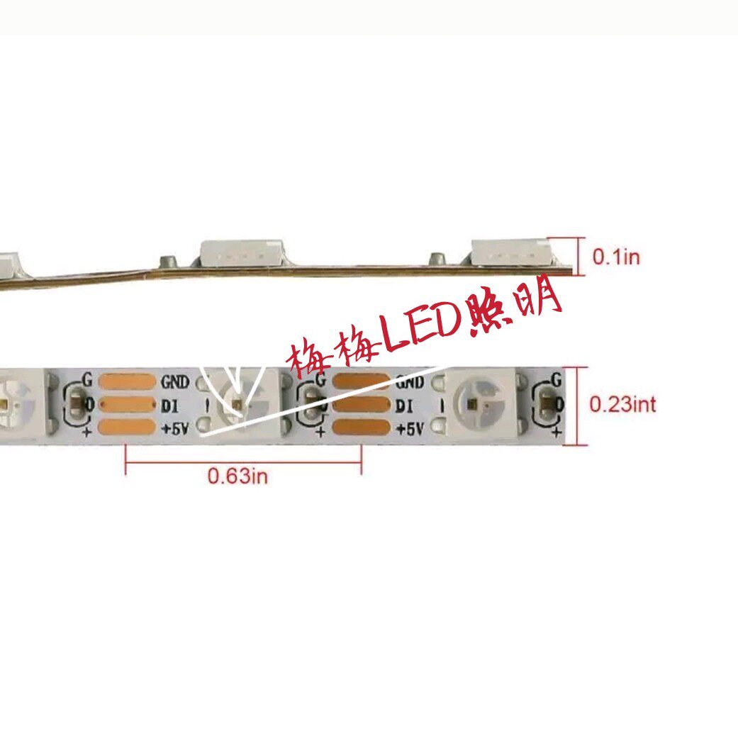 WS2812B slide lamp with narrow plate 5mmLED full color 5050 lamp bead built-in IC single point 5V single control soft lamp strip