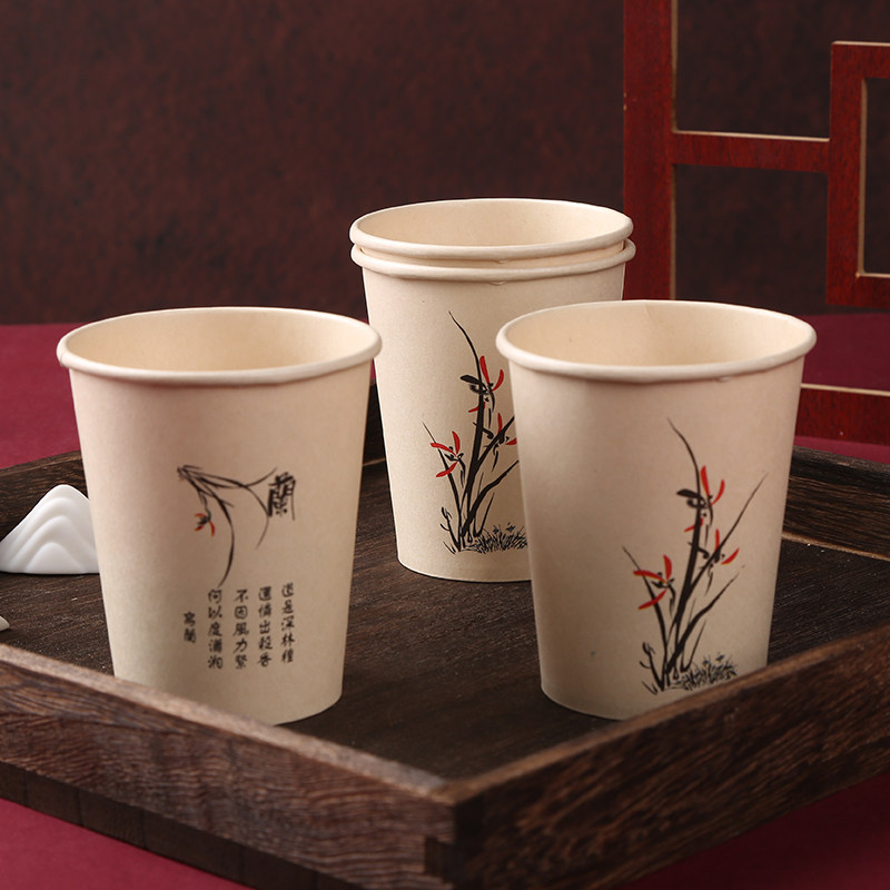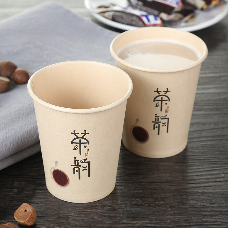 Disposable mug colour paper cup custom print LOGO raw pulp bamboo fiber with cover coffee milk tea cup thickened water glass-Taobao
