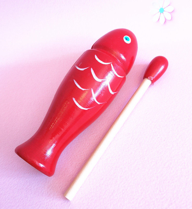 ORF percussion instrument Fish-shaped wooden fish small fish clapper Red wooden fish sound tube Children's music teaching aids