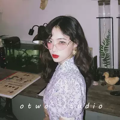 Super cool concave shape European and American women tide ins same triangle cat eye arrow Brown transparent sunglasses sunglasses