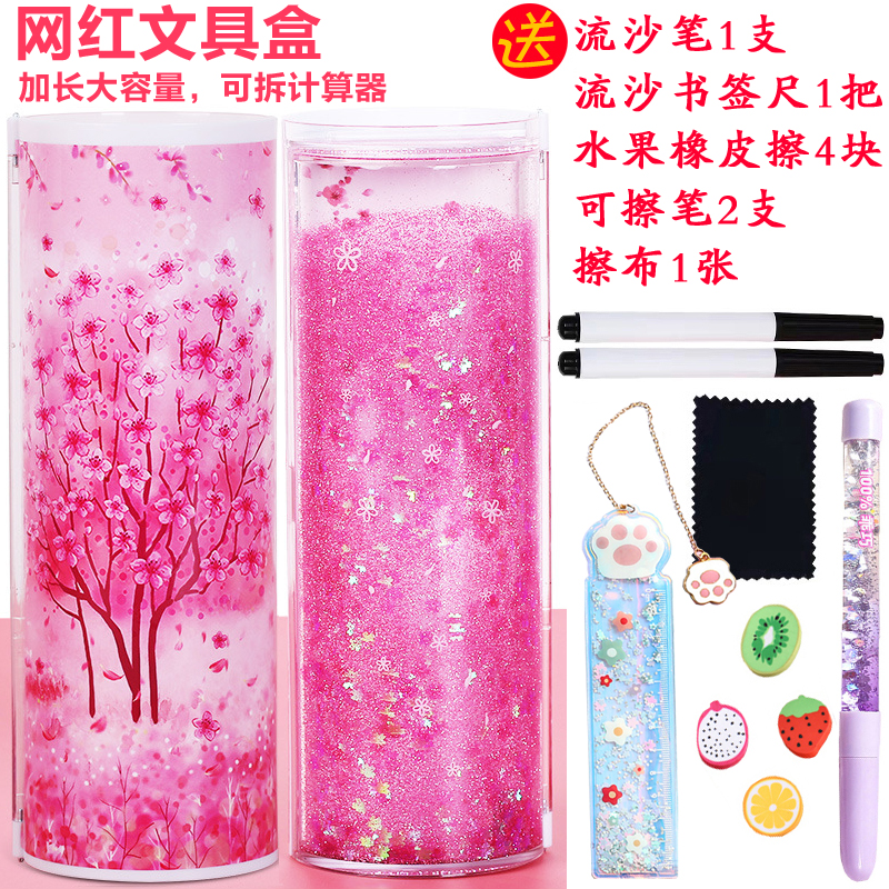 Douyin same quicksand stationery box male and female primary school students junior high school students multi-functional large capacity net red pen bag pencil case