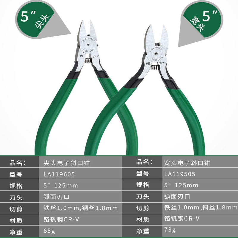 Wide head electronic pitched pliers LA119505 pointed electronic pitched pliers LA119605 electronic pitched pliers 2 pieces