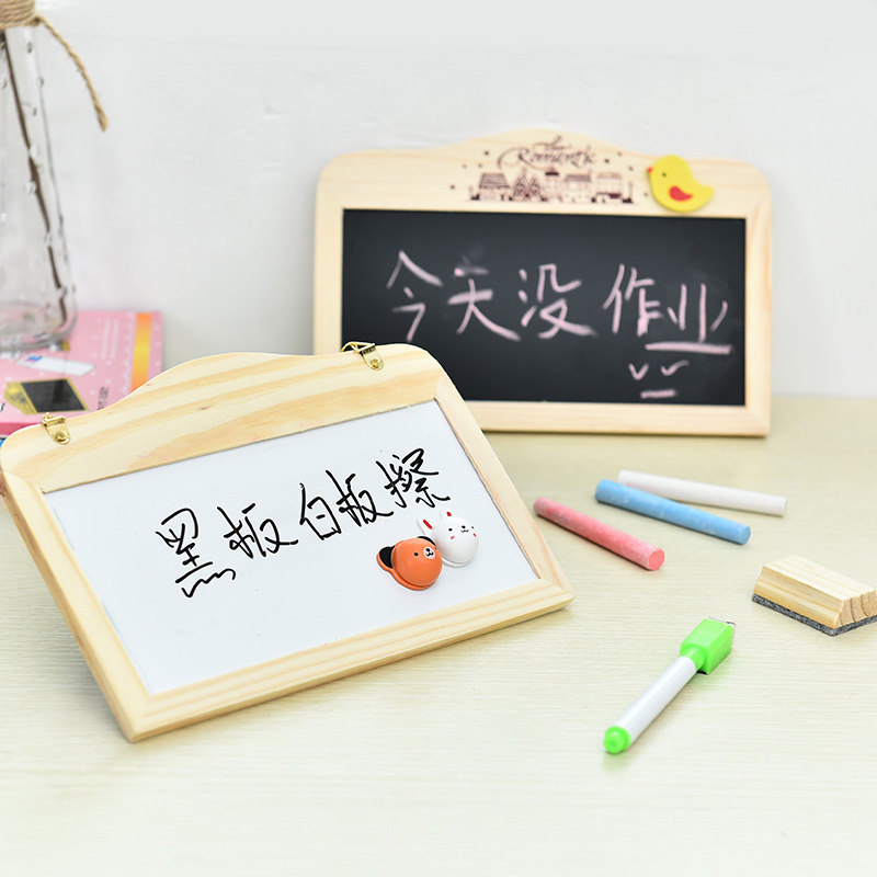 Wooden magnetic hanging mini double-sided small blackboard Creative home message board with eraser Shop decoration drawing board