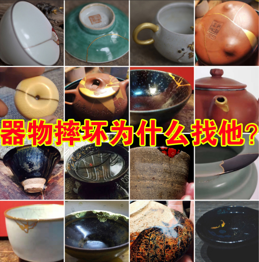 Golden Calligraphic Restoration Built ceramic purple sand Wen playing jade Jade Antique Creative Gap Punch Line Big Lacquer Craftsmanship Porcelain Restoration
