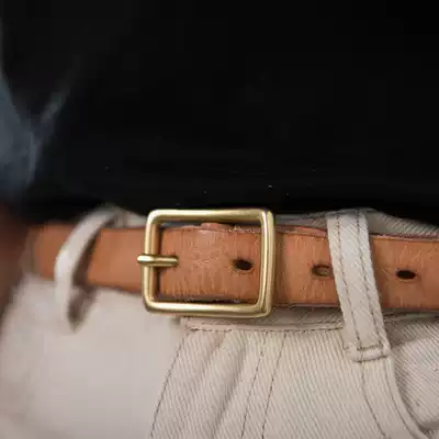 Retro washed vegetable tanning leather women's belt leather copper buckle thin belt Joker pin buckle