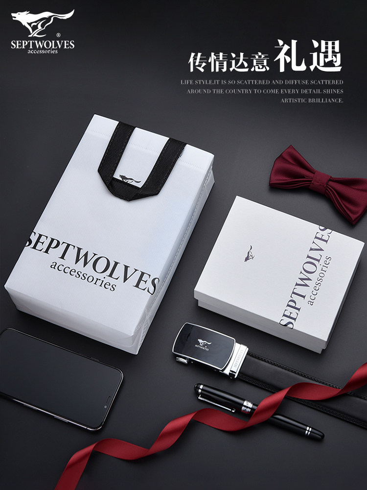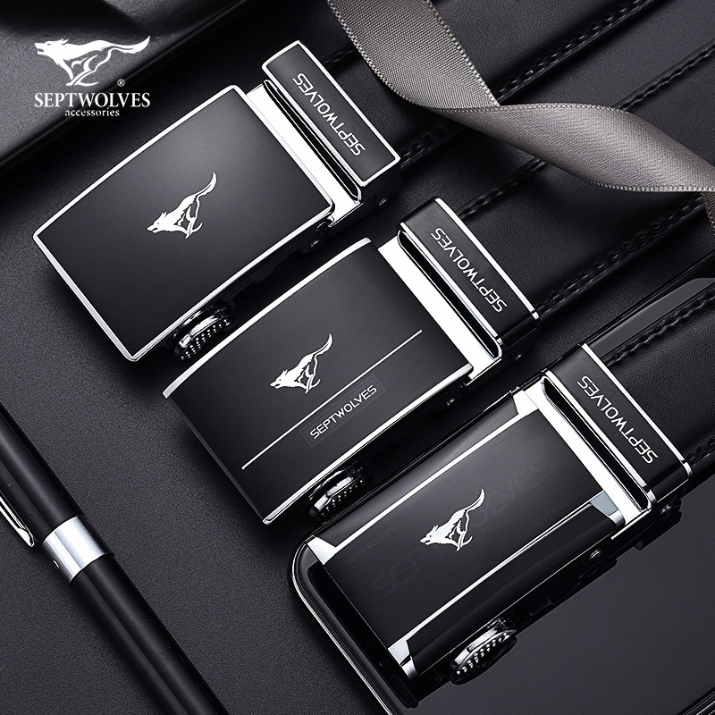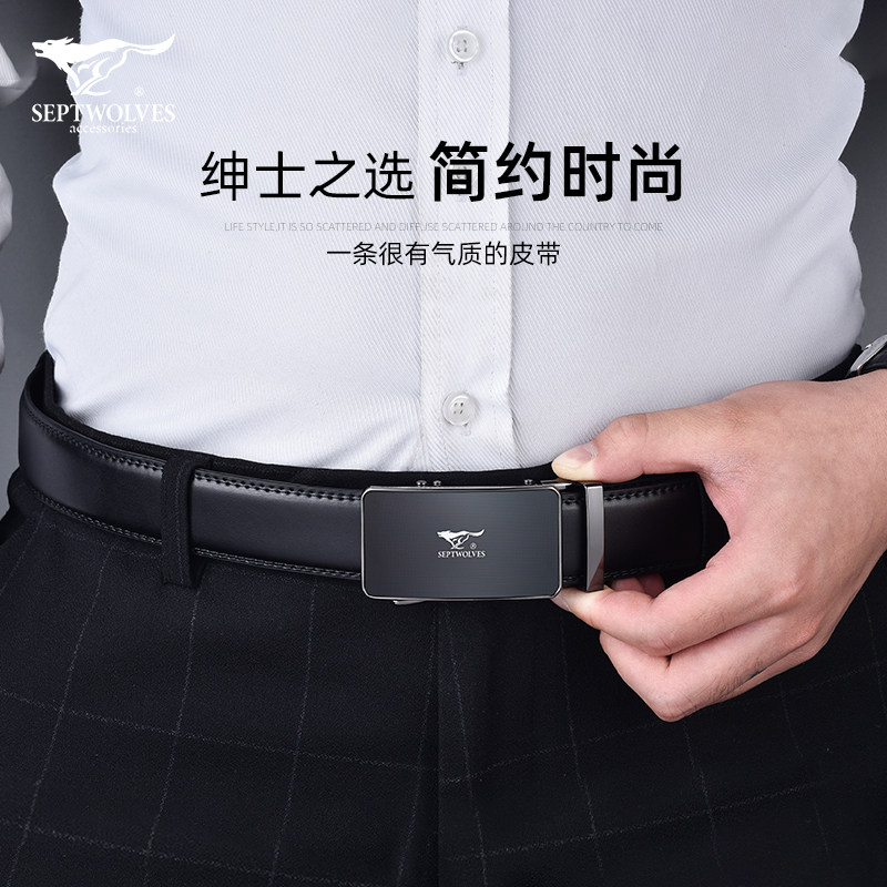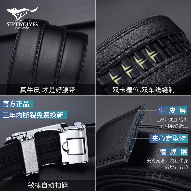 Seven Wolves Men Leather Automatic Buckle Belt Belt Men's Pure Cowhide Young Man Middle-Aged Dad Old Age