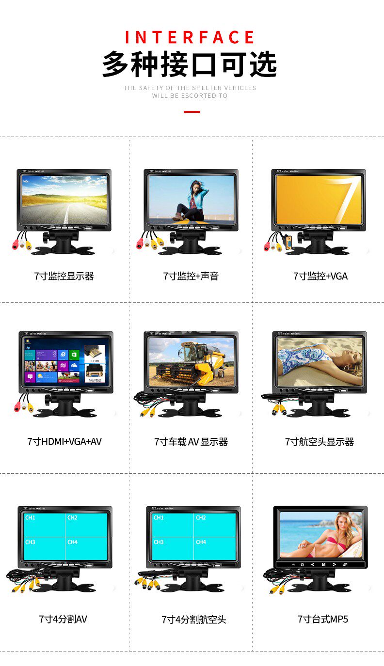 7 inch 800*480 car AV monitor 7 inch 1024*600 car AV monitor 7 inch ips car 1024*600AV monitor 7 inch 800*4