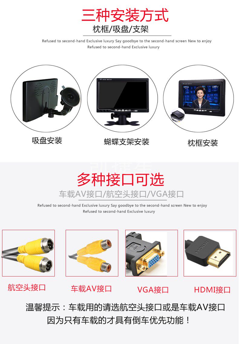 7 inch HD car harvester reversing image HDMI VGA AV car monitor computer sub-screen display