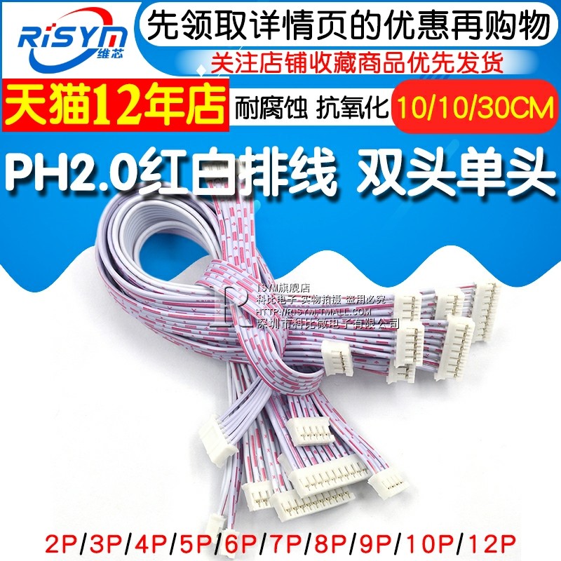 PH2 0 red and white flat cable double head single head 10 20CM 20CM 2P 30 3P 3P 4P 5P 6P-12P connecting thread