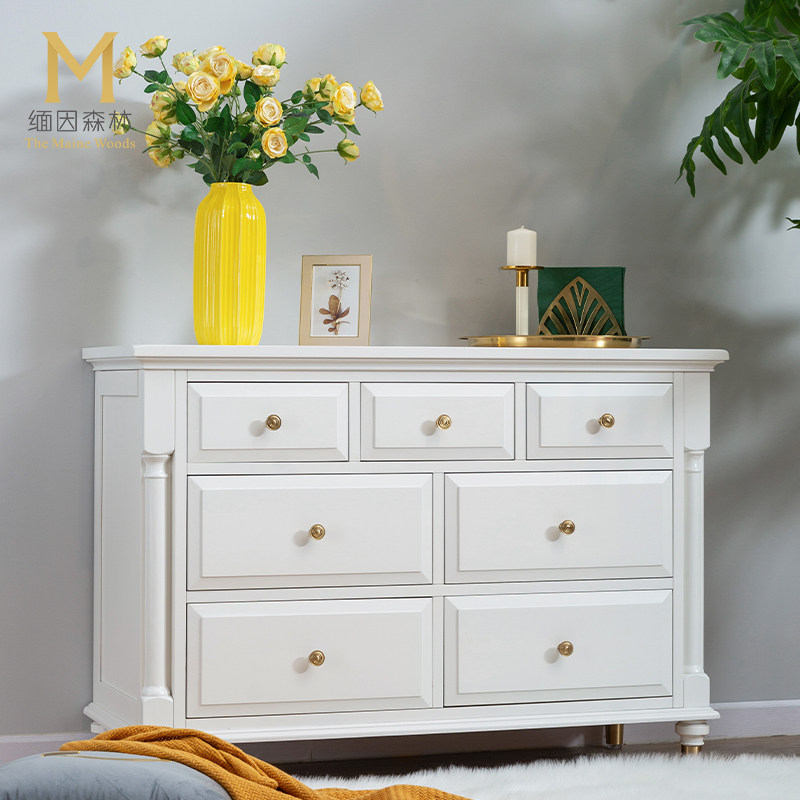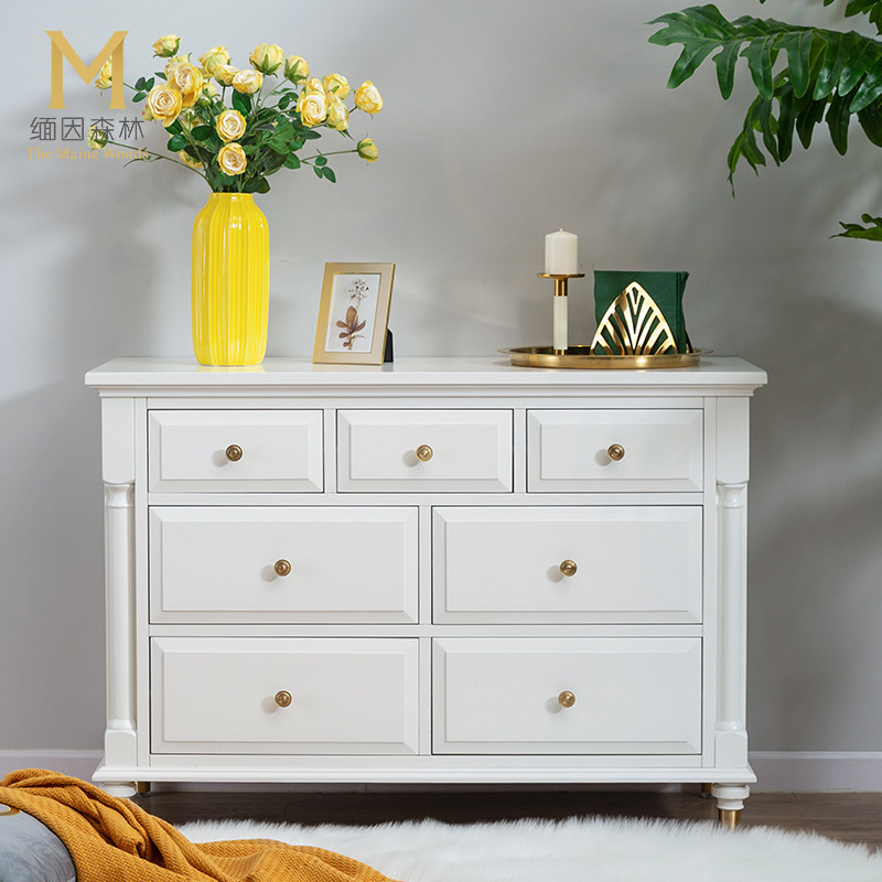 Burmese Forest White Bucket Cabinet Light Extravagant Seven Bucket Chest Of Drawers Cabinet Full Solid Wood American Xuanguan Cabinet Containing Cabinet