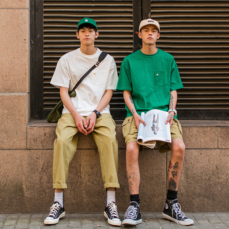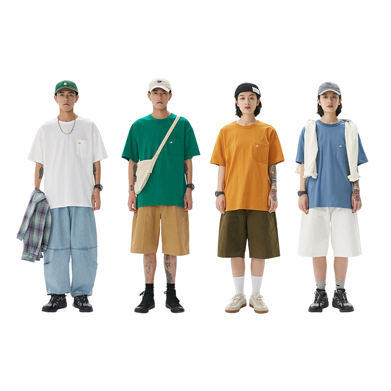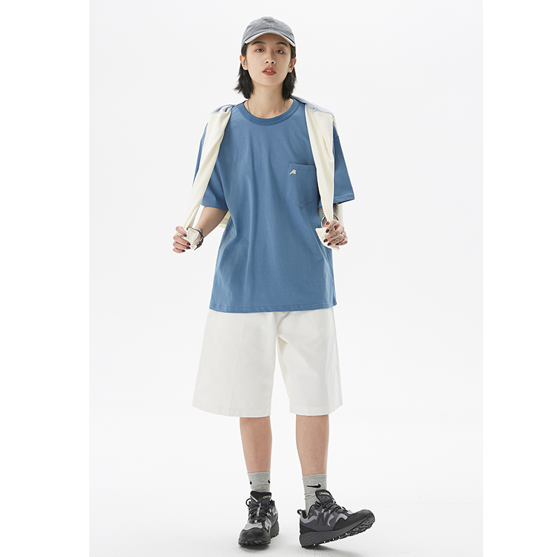 Mr Jiangnan summer clothes Japanese pocket letter embroidery Tide men short-sleeved T-shirt half sleeve loose couple half sleeve tee