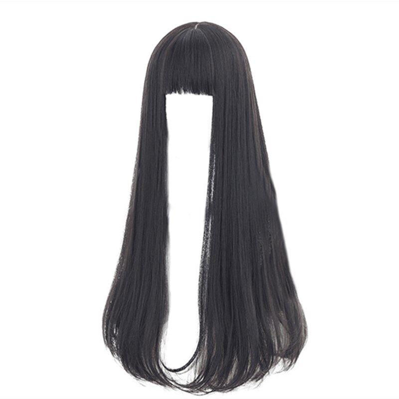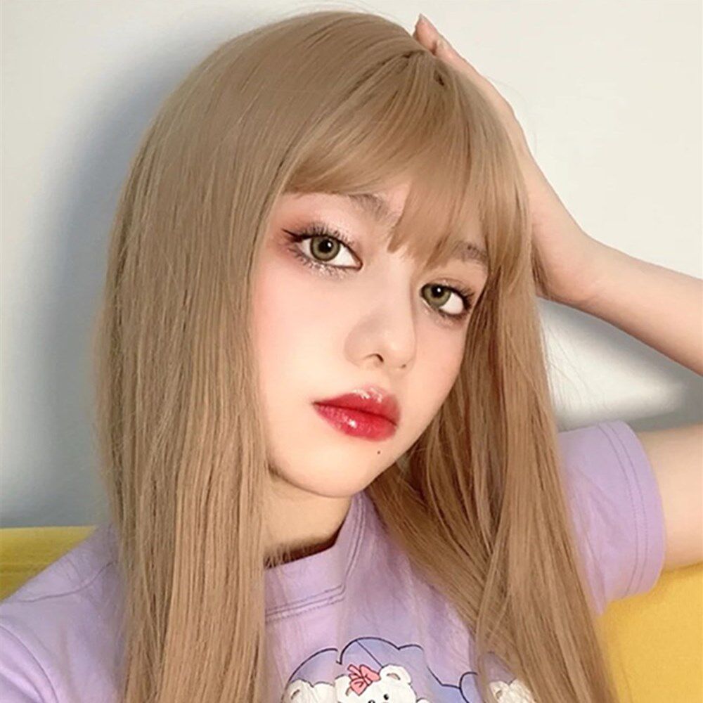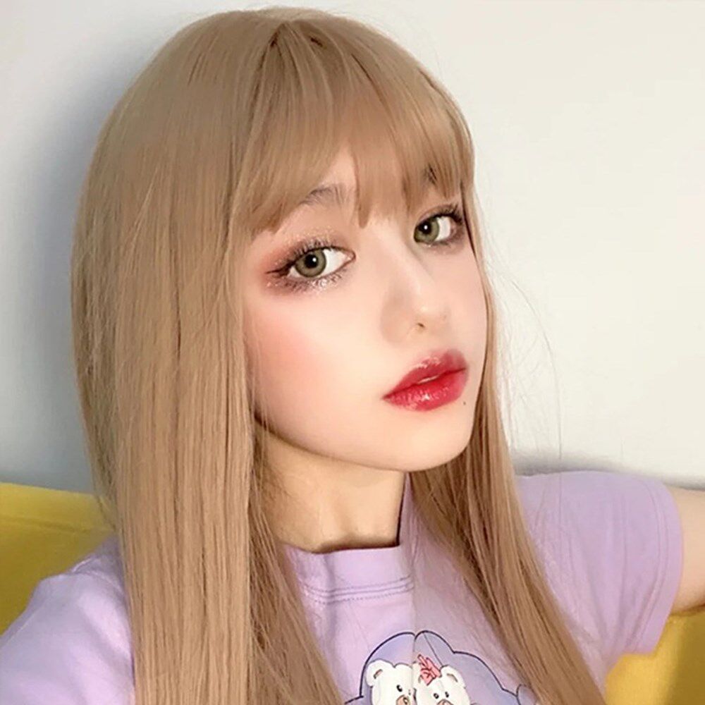 Lisa with gold wig female long hair air bangs long straight hair cos realistic Lolita natural full headgear