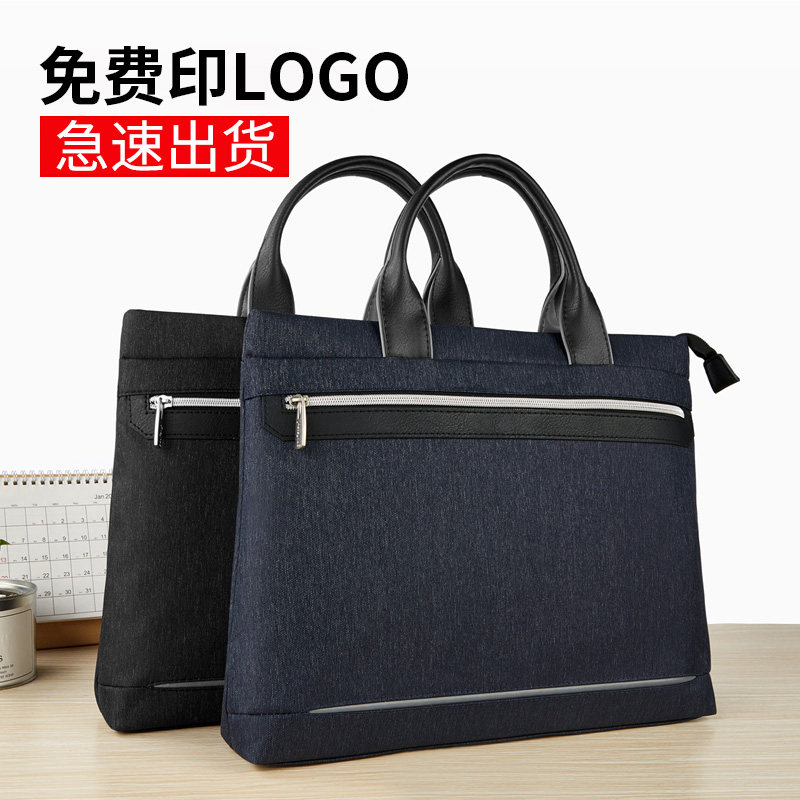 Customized portable file bag business briefcase A4 multi-layer canvas zipper large capacity men and women meeting office bag printed LOGO