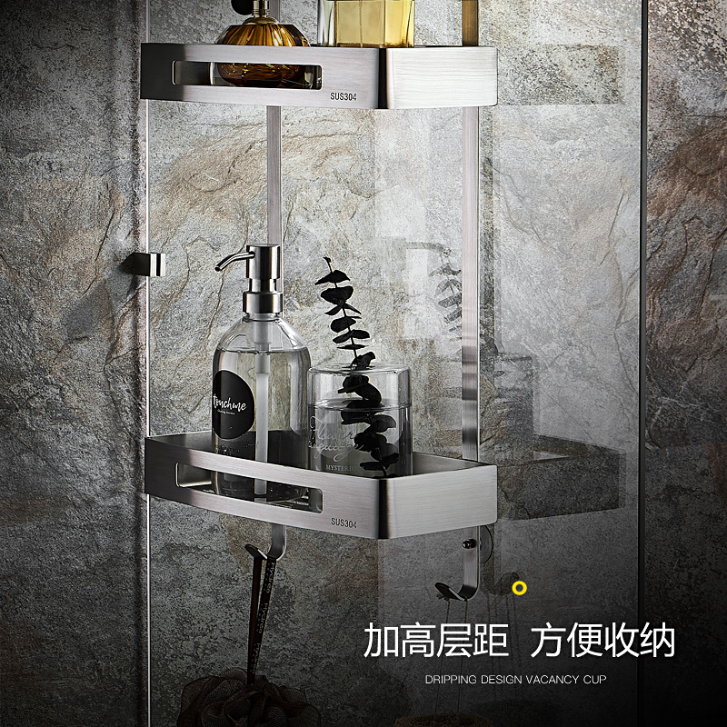 Shower room with bathroom hung basket bathroom 304 stainless steel wall hanging rack free punch toilet
