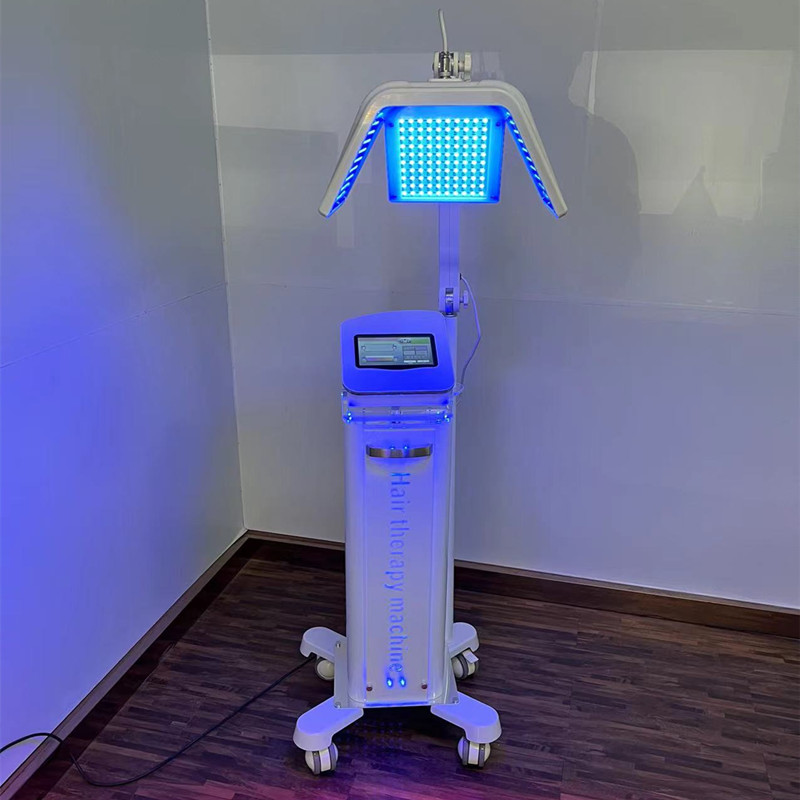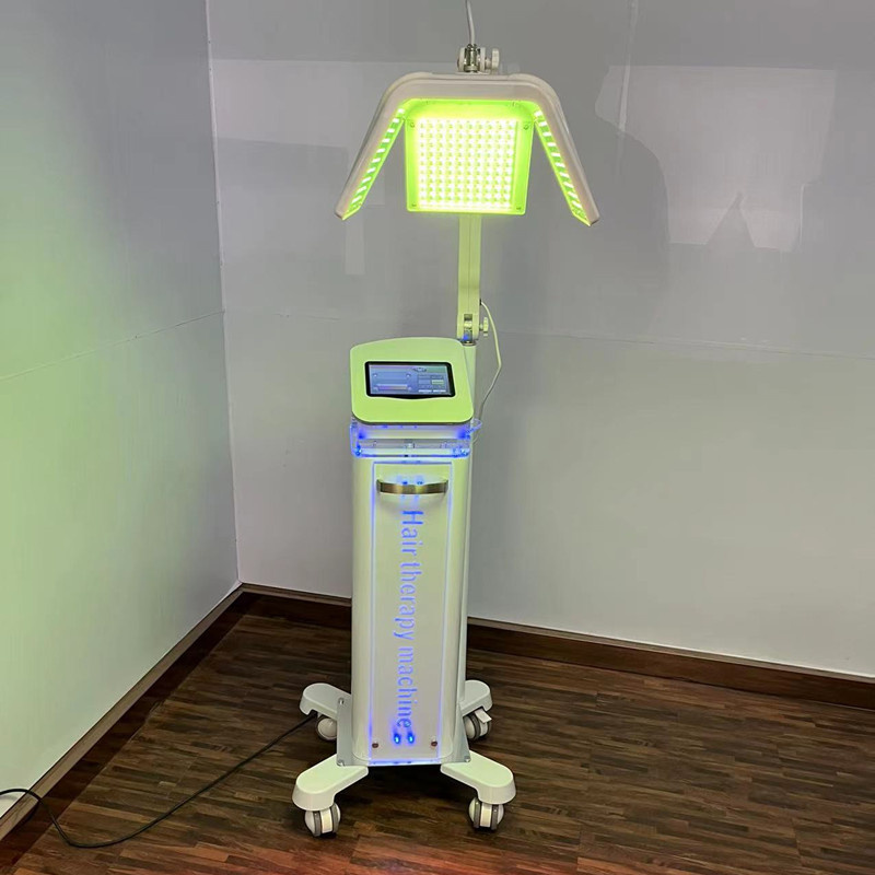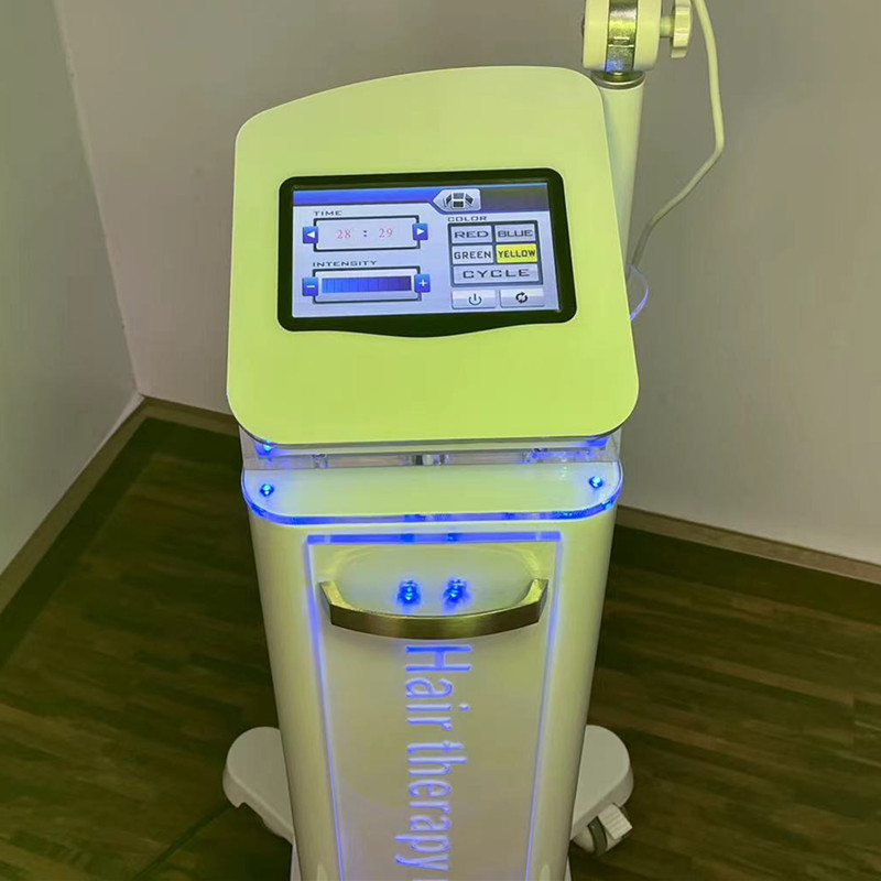 Laser red, yellow, blue and green photodynamic activation of hair follicles, hair growth, anti-hair loss, scalp care, white-to-black hair salon head treatment