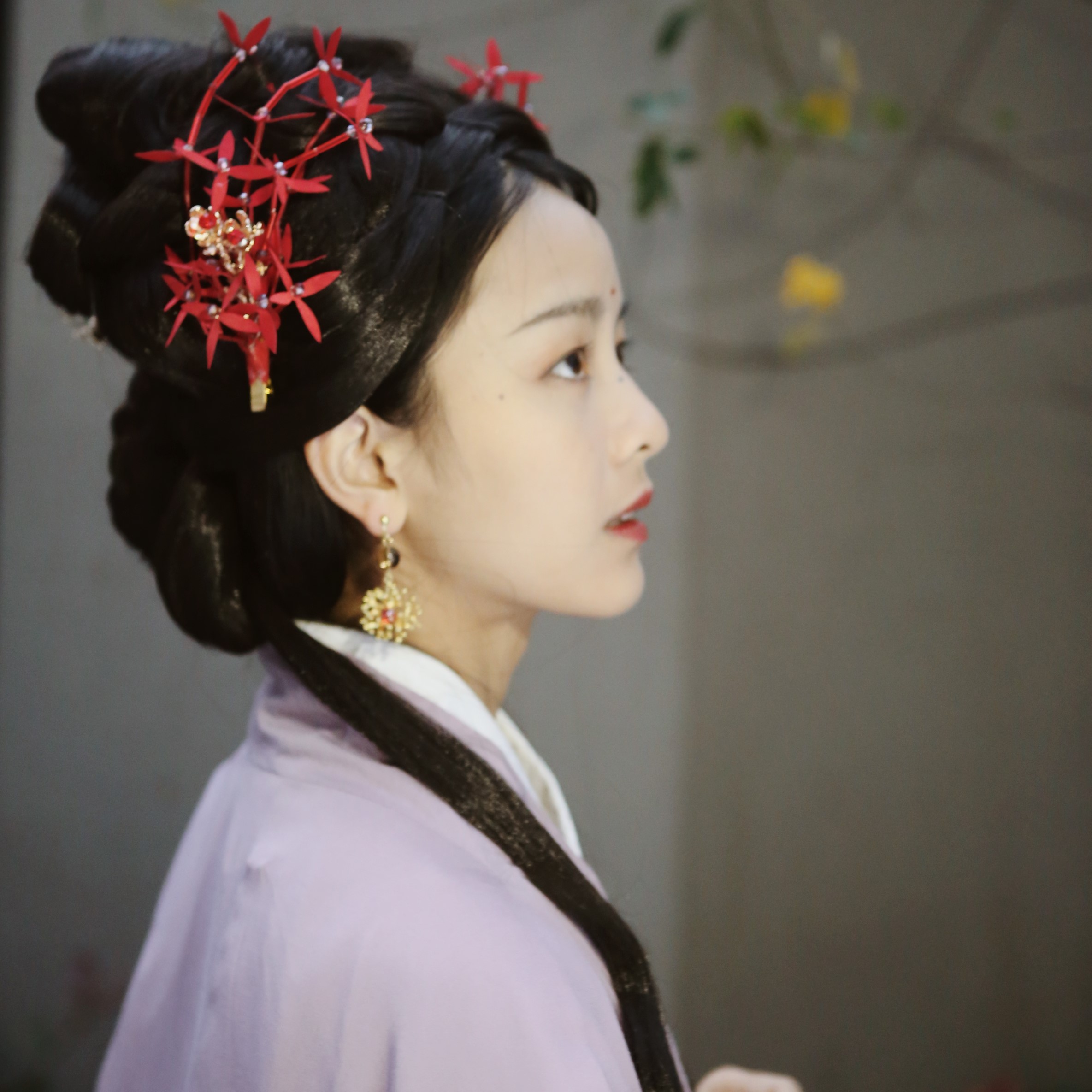 Hanfu Hair Accessories Rental (Frost-Ling Cabinet) Red Shoal Willingness Banquet Mountain Pavilion Red Silk yarn Flowers Ancient Wind Hairpin 1F0154