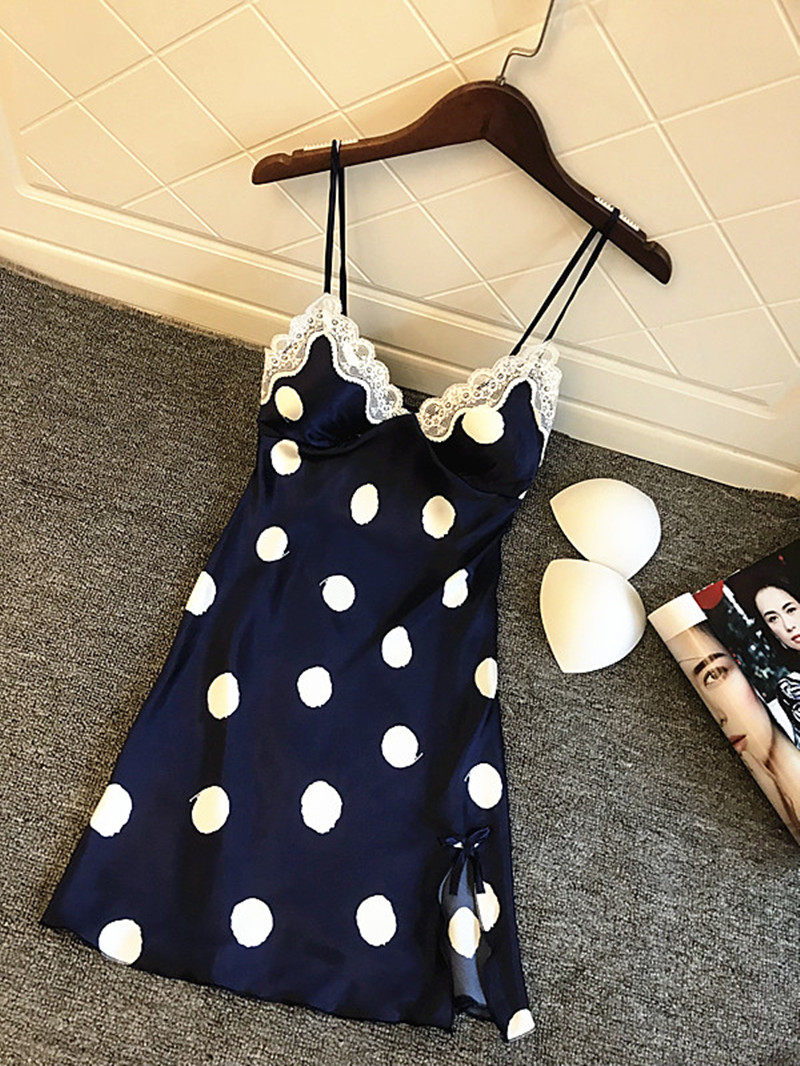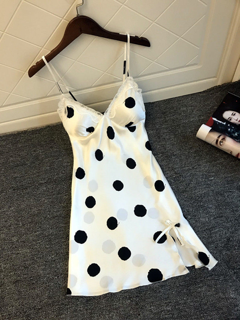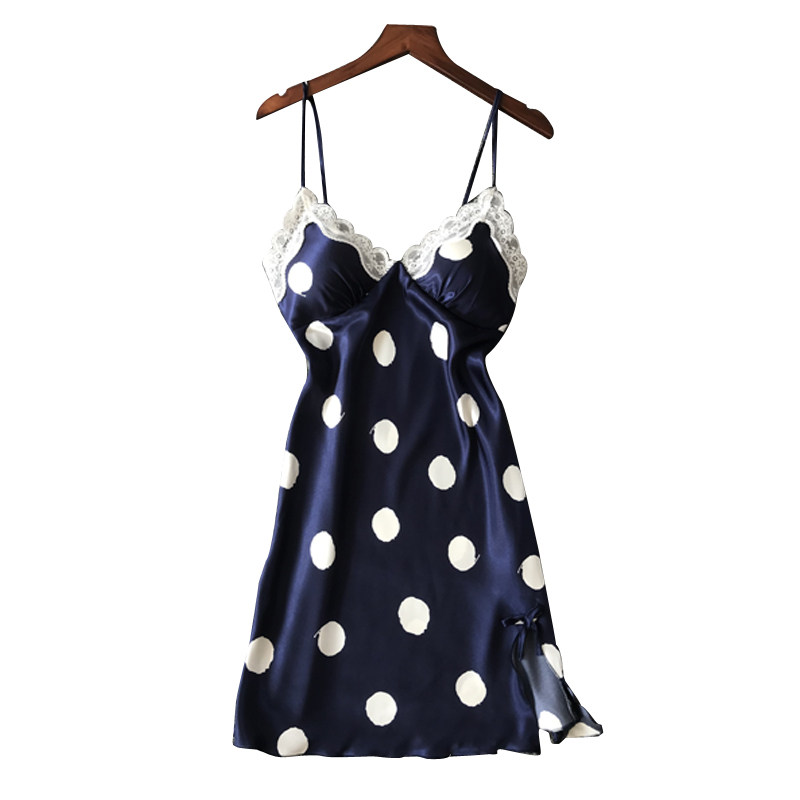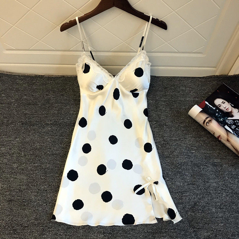 Japanese sling pajamas women's lace thin section sexy belt chest pad small chest gathered v-neck summer ice silk wave point nightdress