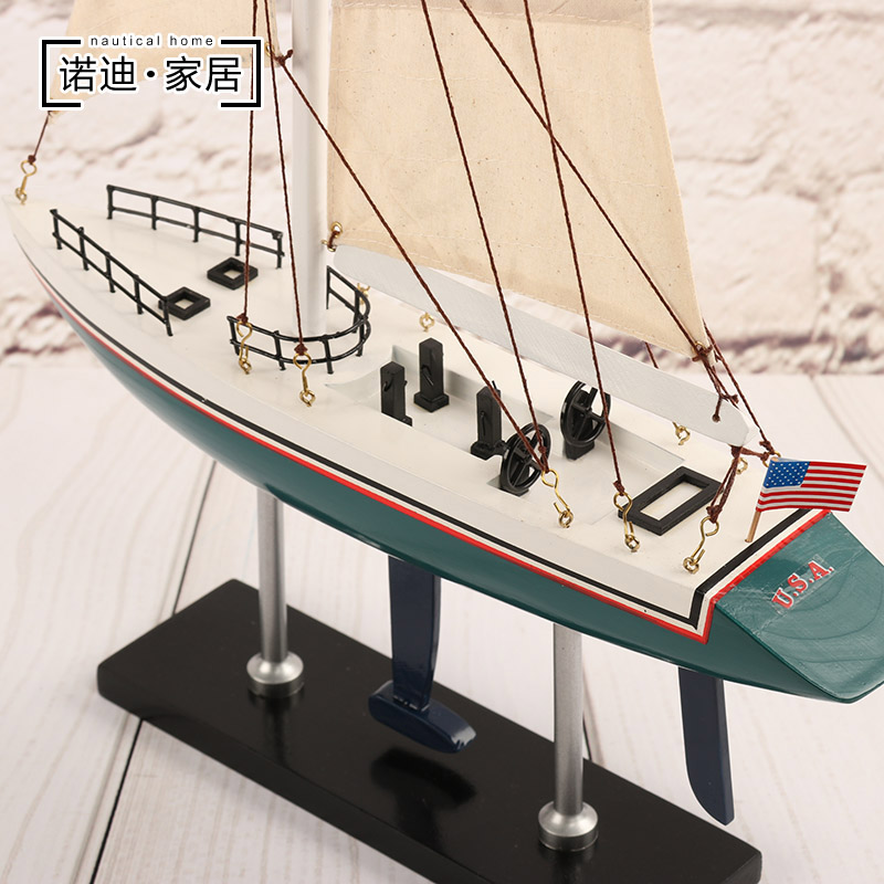 Star flag enterprise sloop Wooden sailboat ornament Mediterranean style solid wood craft sail model