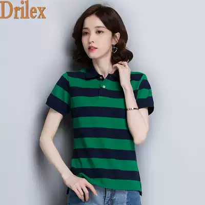 Short-sleeved T-shirt women's lapel collar 2019 summer new slim Korean top Joker striped women's half-sleeved polo shirt