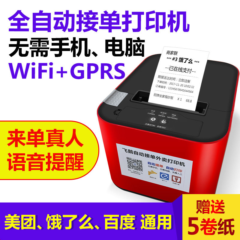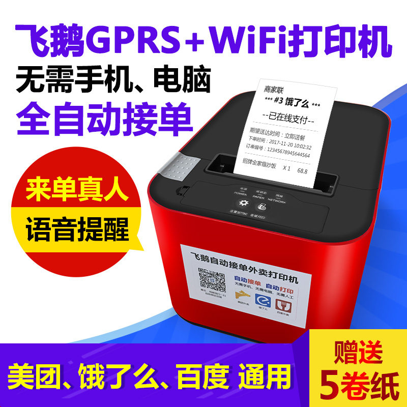 Flying goose WIF moth I delivery printer automatic order wireless WiFi cutter Meituan hungry Baidu Youzan Weimeng Mini Program gprs58mm thermal small ticket catering automatic paper cutting