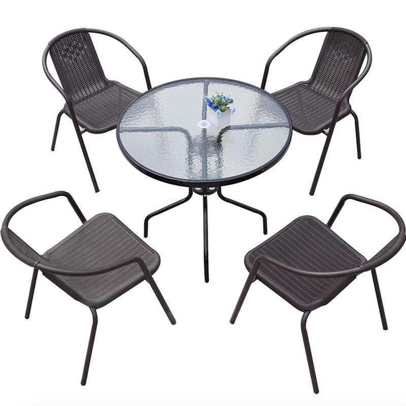 Outdoor table and chair combination with umbrella garden leisure milk tea shop table and chair outdoor single wrought iron back chair modern simplicity