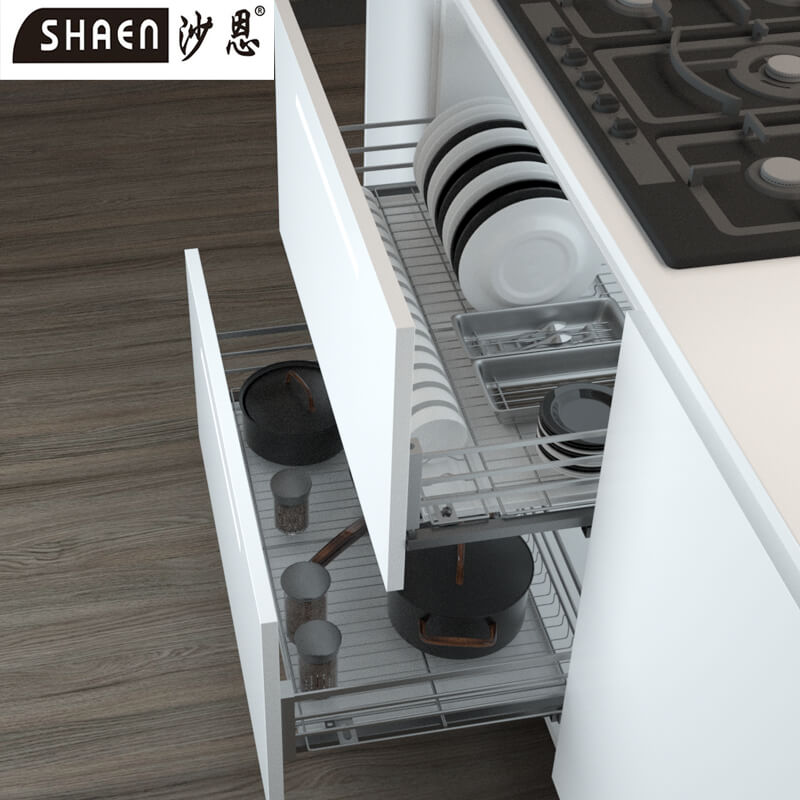 Shane pull basket kitchen cabinet stainless steel nano-dry plated pull basket double buffer drawer seasoning basket dish basket