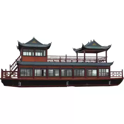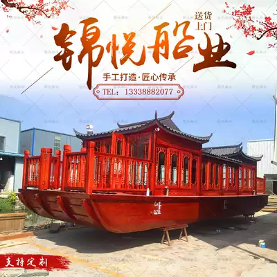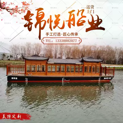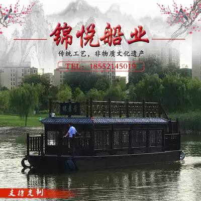 Wooden boat painting boat double-layer water dining large scenic area antique conference reception house electric sightseeing tourist boat