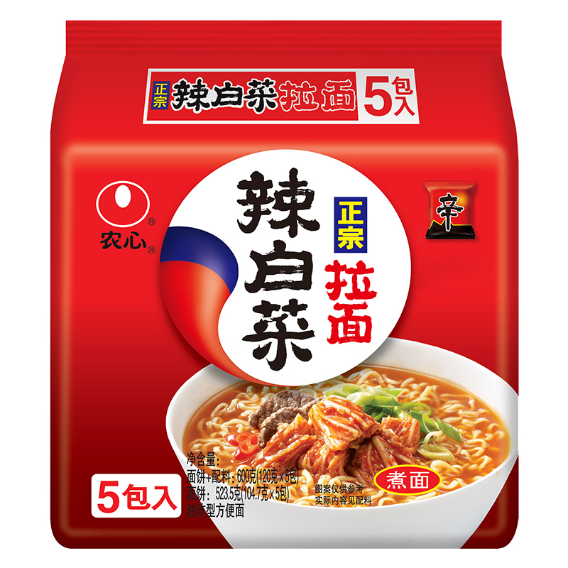 Nongxin spicy cabbage ramen Korean bag instant noodles instant food 120g * 5 five-pack