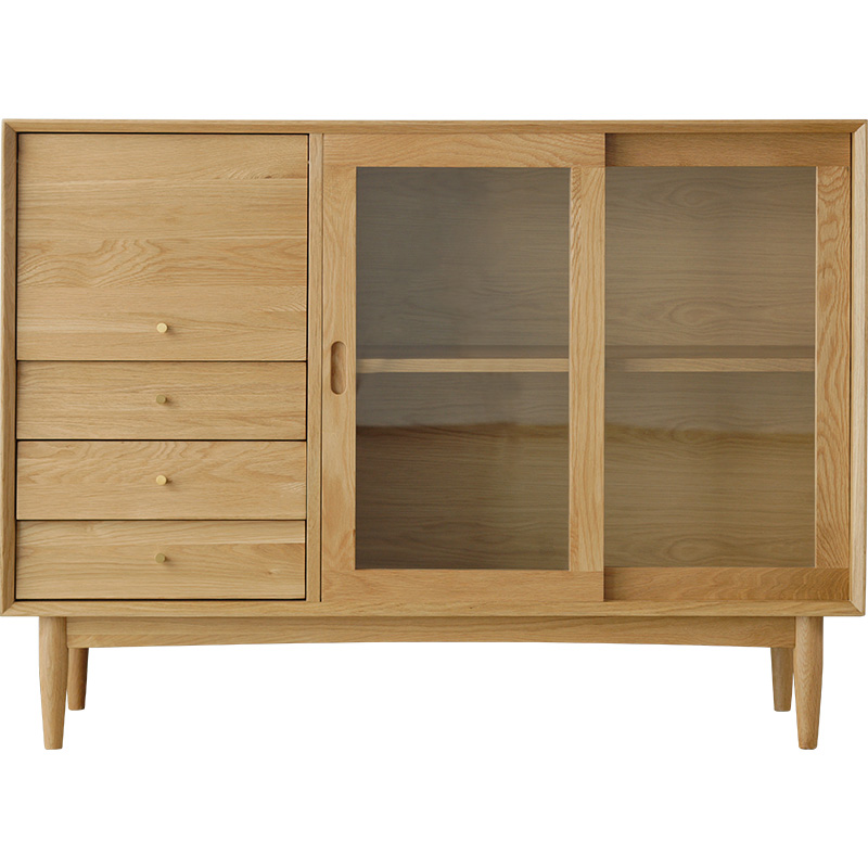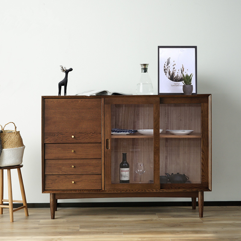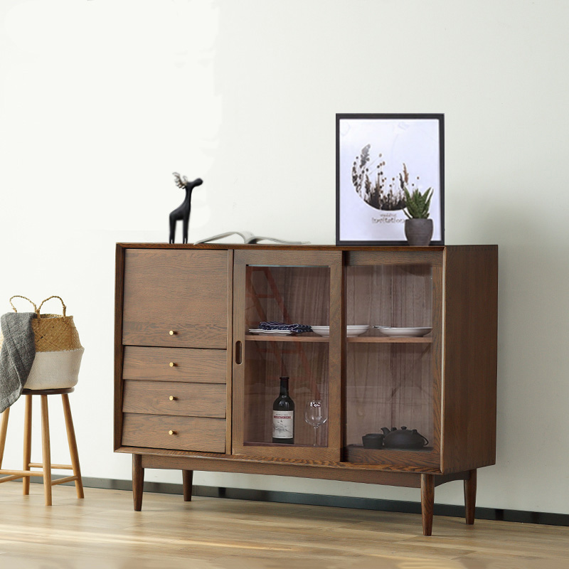 Glass moving door dining cabinet Nordic solid wood storage cabinet multifunctional side cabinet simple hallway storage cabinet