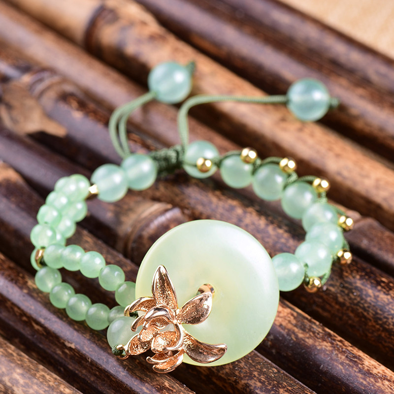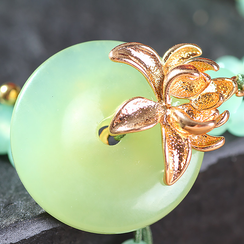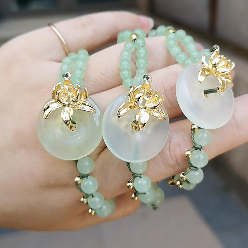 Chinese style female retro green jade cord string Yuping button small fresh rope weaving ancient arts jewelry