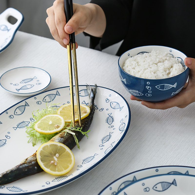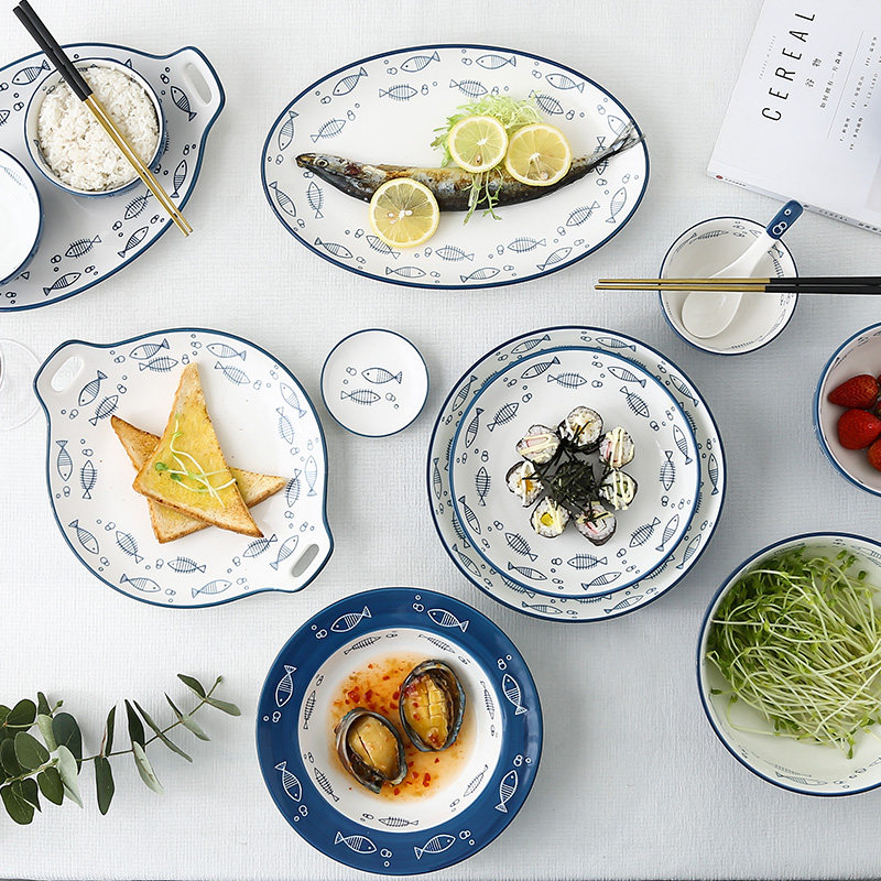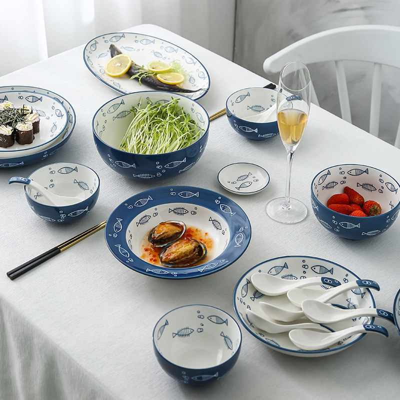 Soup spoon (fish) 3 5 inch dish (fish) 4 5 inch bowl (fish) 5 inch rice bowl (fish) 6 inch noodle bowl (fish) 8 inch soup bowl (fish) 8 inch deep disk (fish) 9 inch deep disk (fish) 9 inch
