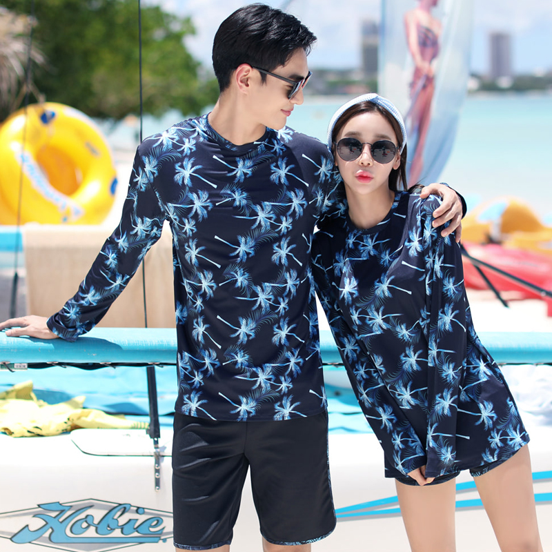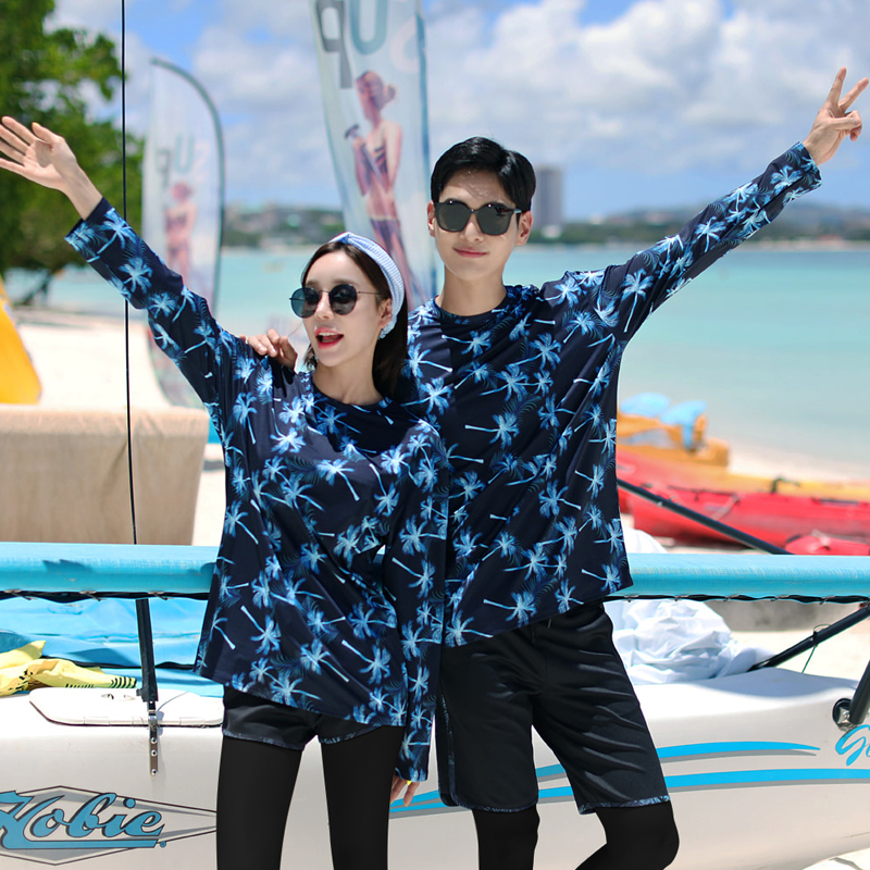 Wetsuit couple 2019 new print long-sleeved sunscreen jellyfish suit surfing swimsuit men's two-piece snorkeling suit