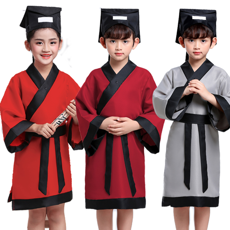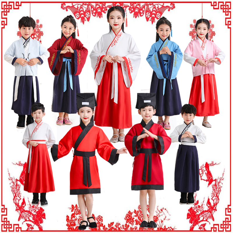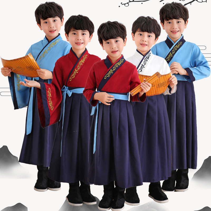 Calligraphy and painting Go ancient costume Chinese school Hanfu boys and girls open pen ceremony book children's three-character script by disciples to perform costumes